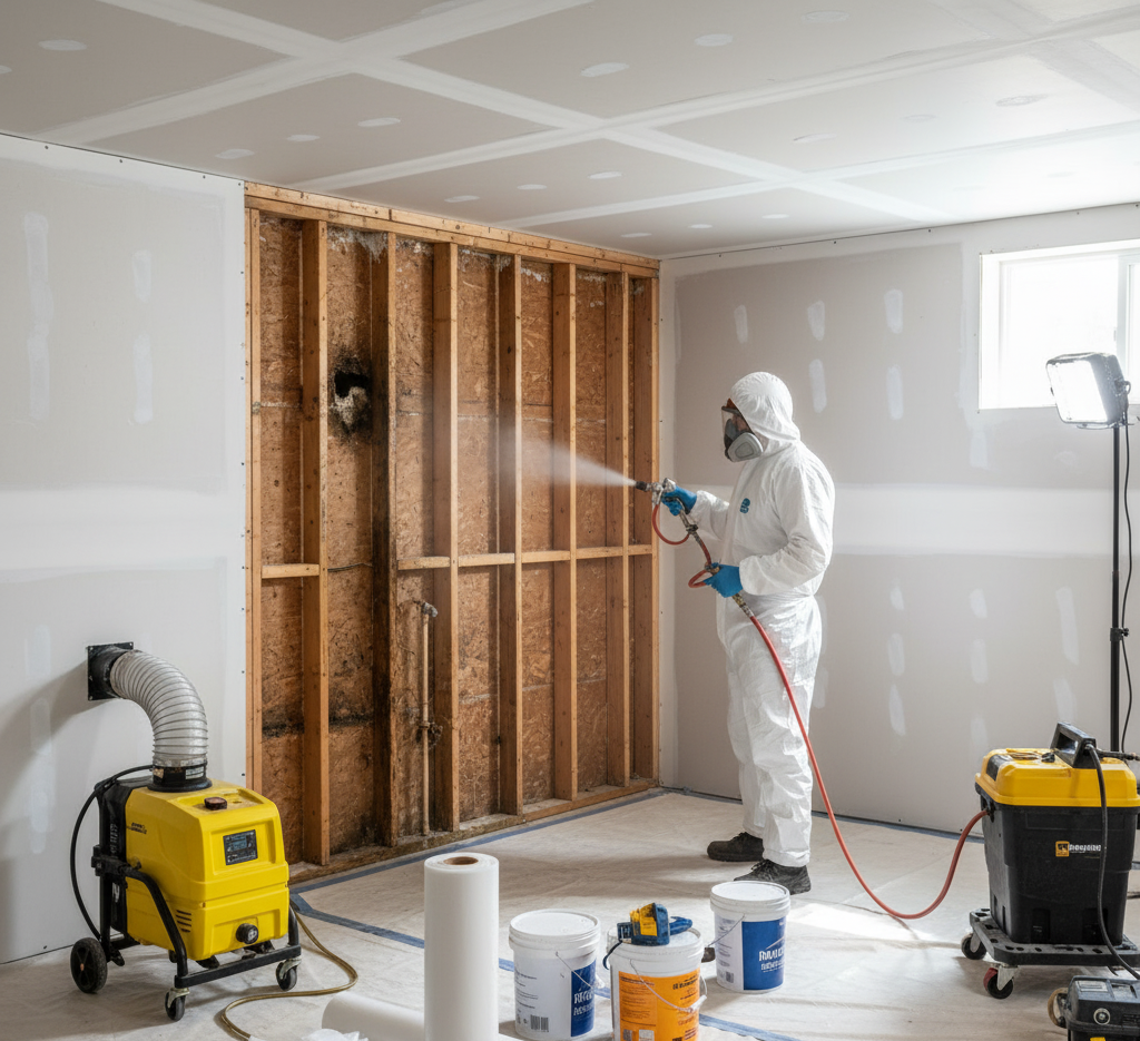 Mold remediation is the controlled process of removing mold growth, cleaning contaminated materials, and restoring indoor air quality. Unlike basic cleaning, remediation addresses the root cause of mold — moisture.